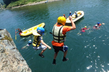 ラフティングは雨でも基本的にはツアーを行いますが、警報が出たり規定の水位に達したら中止となります!